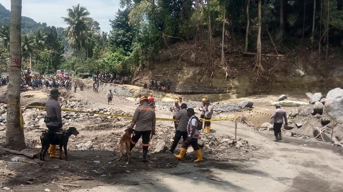 Manggarai Barat – Empat anjing pelacak (K9) milik Polri dikerahkan untuk mencari tiga warga yang hilang akibat banjir bandang di Desa Sawu, Kecamatan Mauponggo, Kabupaten Nagekeo, Nusa Tenggara Timur (NTT), Kamis (18/9/2025).